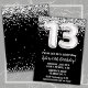 Boy black and white 13th Birthday invitation boys 13 birthday party invitation for a boy blue purple with modern script writing and fun foil balloons.