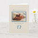Here is a very special card for a very special baby boy shower! This beautiful and touching photo of baby’s feet with the newborn footprints in blue will be the perfect card for the mother-to-be for her baby shower! Set in neutral tones, the blue details stand out for the baby boy on his way.