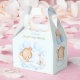 We Can Bearly Wait baby shower favour box. You can choose from 3 sizes of these gable favour boxes simply by clicking on the STYLE dropbox. The soft pastel blue, ivory and beige colours with a cute sleeping baby bear boy on the clouds with the balloons. Easily personalise the text. Great for a lovely baby boy shower party all year round. - Kate Eden Art