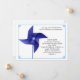 This precious baby announcement is a wonderful way to invite your friends and family to join you in welcoming your new arrival. This design has a blue border on a bright white background. On the left is a blue pinwheel. Your baby announcement text goes to the right- just add your baby's details and you are all set to sweetly announce baby or invite everyone to your baby shower!