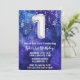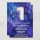 Boy blue white 1st Birthday invitation boys 1st birthday party invitation for a boy blue purple with modern script writing and fun foil balloons.