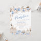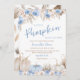 Celebrate your little pumpkin on the way with this sweet and stylish Boy Boho Pumpkin Baby Shower Invitation. This design features soft blue tones paired with watercolor white and blue pumpkins, subtle greenery, and elegant pampas grass accents, creating the perfect mix of rustic charm and boho elegance. Set the tone for a beautiful and heartfelt celebration with this blue boho pumpkin invitation, perfect for welcoming your baby boy this fall! BBS499