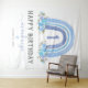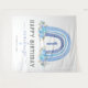 Rustic bohemian boy 1st birthday tapestry featuring a simple white background, a cute watercolor boho rainbow, elegant blue florals, and a modern "happy birthday" template that is easy to customise.