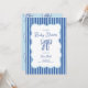 Featuring hand-drawn blue stripes with a sweet bow detail, this design blends minimal styling with playful Italian-inspired charm. It’s bright, cheerful and perfect for celebrating a little boy in a way that feels both modern and boutique.