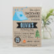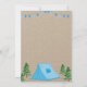 Boy camping birthday invitation featuring blue tent and rustic look.