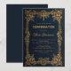 Boy Confirmation Blue Gold Leaves & Cross Vintage Invitation