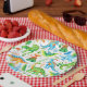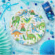 This watercolor dino party dinosaurs design in green, orange and blue features lots of different types of dinosaurs such as t rex, stegosaurus, brontosaurus, triceratops, pterodactyl and more in a fun pattern with foliage and volcanos. These illustrations have been hand painted using watercolor crayons. See the whole matching collection.