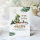 Dinosaur lovers, get ready for a dino-mite Dinosaur-Themed Birthday Party with these one-of-a-kind invitations! Featuring an adorable little boy explorer dressed in a playful dinosaur rex costume, these invitations capture a charming scene of him engaging with small dinosaur toys and marveling at chocolate dinosaur eggs. Stomp, chomp, and let out a roar as you dive into a prehistoric adventure with these birthday invites, designed in a brown and green colour palette that echoes the lush jungles of a time millions of years ago. Perfect for a baby boy's first, second, or even third birthday celebration, these watercolor invitations are more than just unique and cute. They add a whimsical touch that makes the dinosaur-themed party feel enchanting and childlike. Everyone will fall in love with them, just as everyone adores dinosaurs. Order now and make your little one's dinosaur-themed birthday bash an unforgettable experience that's sure to delight guests of all ages! Matching products available. Illustration by "FrostyDew". This design is exclusively available here in my store on Zazzle.