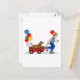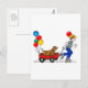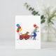 This design features a little boy in jeans, a green & white striped shirt and ball cap. He is pulling his brown shaggy dog in a red wagon that is festooned with colourful balloons.