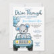 Drive By/Through Boy Baby Shower with Baby Bear (Teddy Bear) in Blue car and balloons for NEW NORMAL baby shower in pandemic Covid.