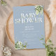 Boy Dusty Blue Greenery Foliage Letter Baby Shower Invitation