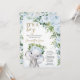 Celebrate your little prince with this sweet and charming Boy Elephant Baby Shower Invitation. Featuring an adorable baby elephant wearing a soft blue flower crown complemented by elegant blue florals and greenery on the right side, perfect for a boy-themed baby shower. Perfect for a floral, jungle, or elephant-themed baby shower, this invitation adds a touch of sweetness and sophistication to your celebration. BBS503