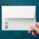 Boy's Elephant watercolor envelope, features a cute elephant, a baby blue balloons on a white background. Ideal of an upcoming boy's elephant themed birthday.