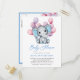 Boy Elephant Blue Balloon Script Cute Baby Shower Invitation Postcard