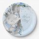 Elephant baby shower paper plates with cute baby elephant with crown on a watercolor floral background. You can add your own text.