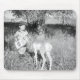 Boy feeding antelope by hand mouse pad