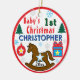 Boy First Christmas PHOTO Rocking Horse Ceramic Ornament