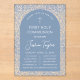 Boy First Communion Blue Arch Floral Pattern Acrylic Invitations