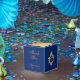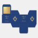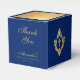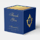 An elegant blue and gold favor box, recommended for a boy's religious confirmation. The flap is mostly faux gold foil. The rest is royal blue.