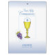 Receiving communion for the first time is very special occasion. This congratulations gift, souvenir, giveaway and party essential for a boy on his First Holy Communion will be perfect with the chalice and host and grapes with a soft blue background.