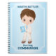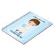 Boy First Holy Communion spiral photo notebook is designed with cute, brunette little boy holding bible. There is a wording which you can keep or change it to your own text by clicking PERSONALIZE option.