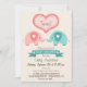 Boy & Girl Twin Pink & Teal Elephants Baby Shower Invitation