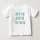 A little white rabbit and text of blue and yellow that reads "It's My First Easter" on baby's first Easter T-shirts, long sleeve Tshirts, and bodysuits!