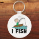 A stick figure boy fishes from a boat and text reads "I Fish" on fishing T-shirts, tote bags, mugs, stickers, buttons, and more.