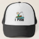 A stick figure boy fishes from a boat and text reads "I Fish" on fishing T-shirts, tote bags, mugs, stickers, buttons, and more.