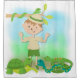 A cute shower curtain for boys who love reptiles and safari hikes! Features a boy with safari hat, a snake wrapped around a tree branch, a polka dotted snake, lizard, and turtle!