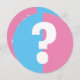 Boy or girl gender reveal baby shower party custom Invitation template. Cute round pink and blue question mark invites for new parents, friends, family and guests. Personalised design. Round circle cut out shape design with baby feet footprints. Circular invites for newborn he or she. Double sided print.