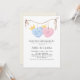 Featuring a neutral baby theme with hanging baby clothes, this design is perfect for gender reveal parties, baby showers, or family gatherings.