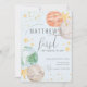 Adorable space birthday invitation with pastel planets, moon, stars and faux gold accents. Perfect for a boy's outer space galaxy themed party.