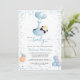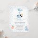 This adorable baby shower invitation features a boy panda bear being flown by balloons with elegant script and modern text for your details. Back features panda bear holding a balloon and text for a book request, or can be deleted for a clean look. Easy to customise by clicking "Personalise".