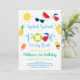 This birthday invitation features adorable colourful summer illustrations with faux gold foil accents.