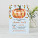 Pumpkin Fall Baby Shower Invitation. Autumn Baby Shower Invitation. Boy Baby Shower invite. Blue, Orange and Brown. For further customisation, please click the "Customise it" button and use our design tool to modify this template.