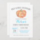 Boy Pumpkin First Birthday Invitation. Orange, Blue and Grey. Boy Bday Party Invite. 1st 2nd 3rd 4th 5th 6th 7th 8th 9th 10th, Any Ages. For further customisation, please click the "Customise it" button and use our design tool to modify this template.