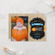 Boy Pumpkin First Birthday Invitation with custom photo, orange and blue, chalkborad and burlap background. For further customisation, please click the "Customise it" button and use our design tool to modify this template.