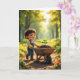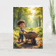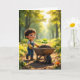 Boy Pushing a Tree Sapling In a Wheelbarrow Card
