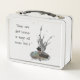This is a standard metal lunchbox that appears to work just fine. We designed this box ourselves with an uploaded photo and custom text on the front and back. It looks absolutely beautiful except the front of the lunchbox is not centered like it shows in the photo. The print borders don't align with the inset flat part of the box where the preview photo online showed it perfectly centered in there. The back looks nice and centered though.