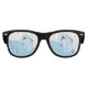 Kids birthday party sunglasses for kids featuring a shark on a blue ocean background. Great sea theme birthday party supplies and favours for a boy in blue and orange.