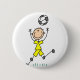 A boy stick figure soccer player with soccer ball on a customisable button, great for anyone who loves soccer and stick figures!