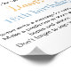 My thoughts on this product was excellent. Well printed in a gloss finishing and just the size l ordered. It arrived in good condition and am overall satisfied with the product. The printing turned out great. I was quite surprised with the finishing touch to the poster. The semi gloss was just right and a perfect size to display at the wedding.