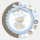 Cute teddy bear with novelty dot and paw print with ribbon and bow round sticker.