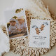 This design features two sweet watercolour bears, each with a party hat and holding 3 blue balloons - ideal for your twin boys' Bear-y First Birthday party! You can add your own photo to the back of the invitation.