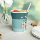 The illustration appears on the cup against a vibrant teal background that keeps the design bright and cheerful. The playful animal clinic scene adds a fun touch to the table and pairs perfectly with other decorations from the veterinarian birthday party collection.