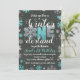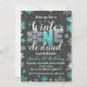 Winter onederland invitation with silver and blue glitter snowflakes for celebrating first birthday your little boy. Chalkboard background.
