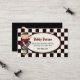 Stylish boy's play date calling card, done in a black and off white chequered pattern. An off white oval text area, in the middle, is decorated with maroon coloured rim and cute country graphics, of a little boy holding a skateboard. Personalise the text for child. Great way to stay in touch with other moms and arrange play dates, birthday parties, and baby sitting co-ops.