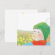 Boy with wild Primroses - picture book illustration for a children's book 'Heralds of spring' written and illustrated by Julia Doria. Wild primroses are one of the first early spring flowers. The Primrose's name comes from 'prima rosa' (Latin), meaning 'first rose' as primroses flowering very early in spring. Young child picking up primroses. The Nature Spring theme. Welcome spring, a season for hope and new beginnings.
