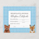 Cute woodland theme boy's birthday party adoption certificate card featuring illustration of a bear and fox. Give out stuffed animals during the party as a party favour along with this certificate!